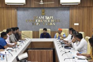 સમગ્ર રાજ્ય સહિત તાપી જિલ્લામા પણ આગામી તા.૧૭મી સપ્ટેમ્બર ૨૦૨૪થી શરૂ થઈ રહેલા ‘સેવા સેતુ’ કાર્યક્રમ સહિત ‘સ્વચ્છતા હી સેવા’ કાર્યક્રમ અને આગામી તારીખ ૨૭ સપ્ટમ્બરે યોજાનાર ગરીબ કલ્યાણ મેળા સંદર્ભે, તાપી જિલ્લા કલેકટરશ્રી ડો.વિપિન ગર્ગના અધ્યક્ષસ્થાને તથા ધારાસભ્યશ્રી મોહનભાઇ ઢોડિયા તથા મોહનભાઇ કોંકણીની ઉપસ્થિતીમાં આયોજન અંગે ઉચ્ચસ્તરીય બેઠક યોજાઇ હતી.