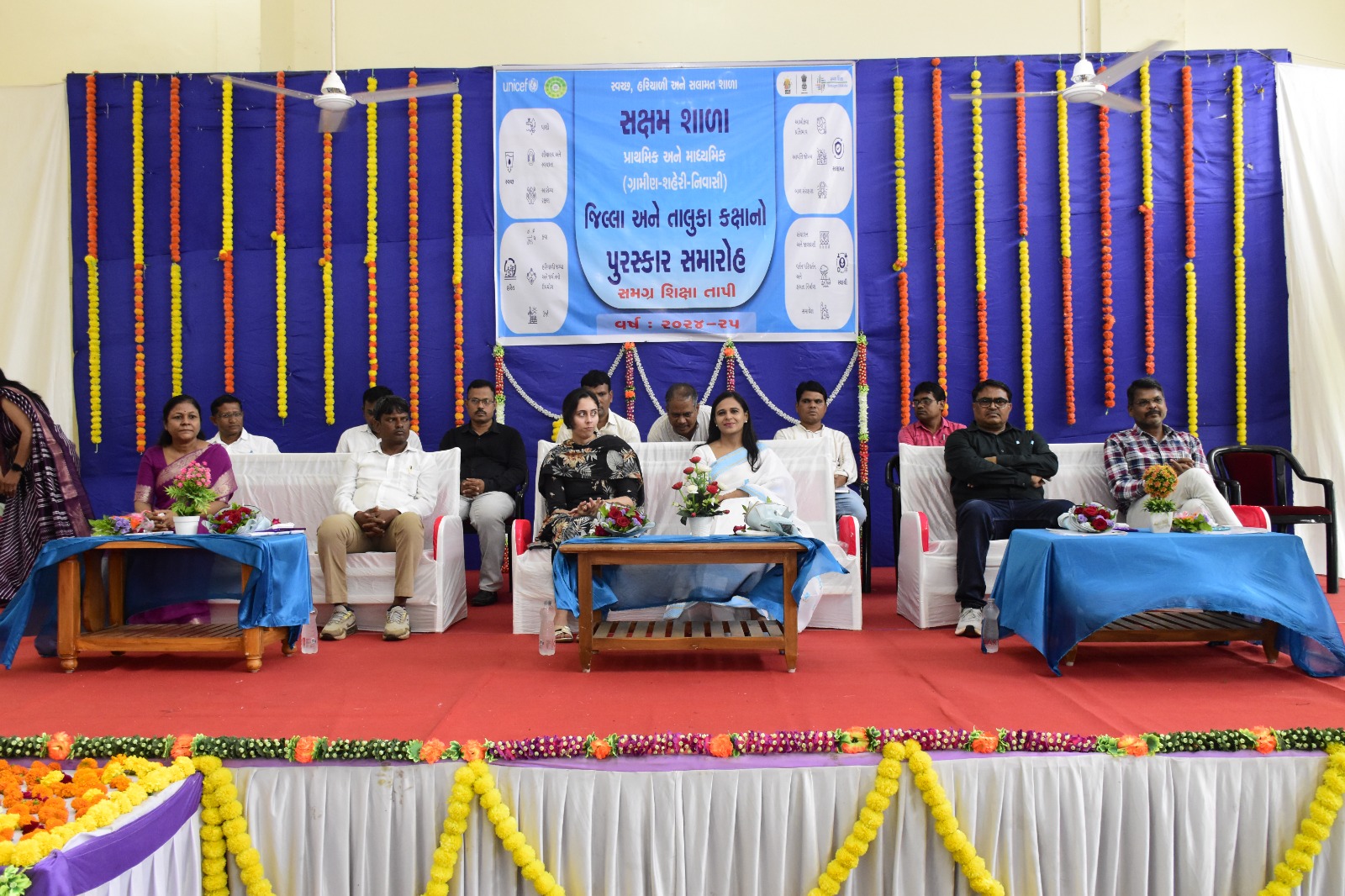 સમગ્ર શિક્ષા અભિયાન દ્વારા ‘સક્ષમ શાળા’ કાર્યક્રમ અંતર્ગત તાપી જિલ્લા સેવાસદનના ઓડિટોરિયમ હોલ ખાતે યોજાયેલા સક્ષમ શાળા’ કાર્યક્રમ એવોર્ડ સમારોહમાં જિલ્લાની ૧૫ શાળાઓને ‘સક્ષમ શાળા’