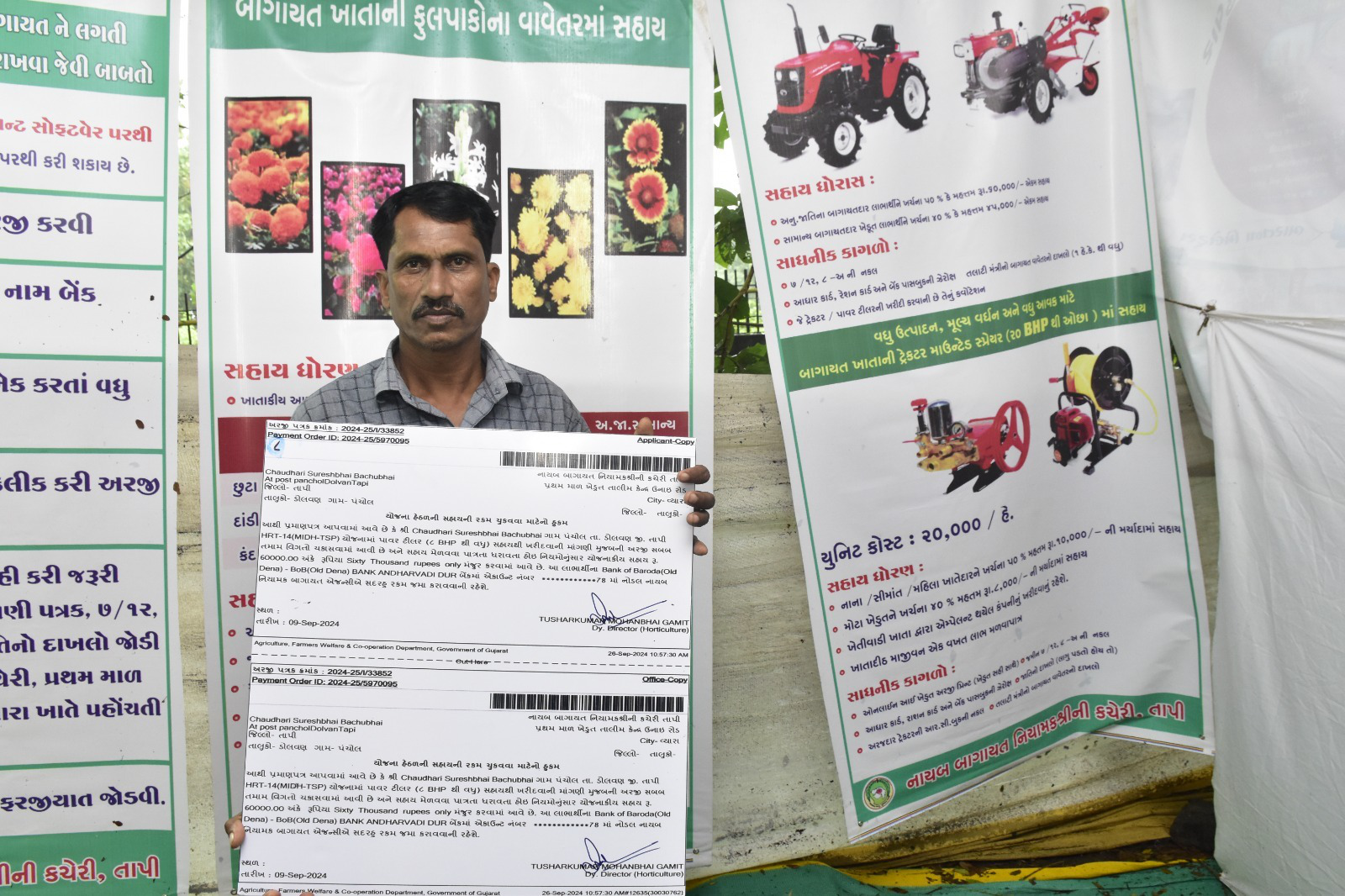 તાપી જિલ્લો : ગરીબ કલ્યાણ મેળા માંથી પાવર ટ્રેલર માટે ૬૦ હજારની સહાય મેળવવી સરકારશ્રીનો આભાર વ્યકત કરતા ચૌધરી દિનેશભાઇ