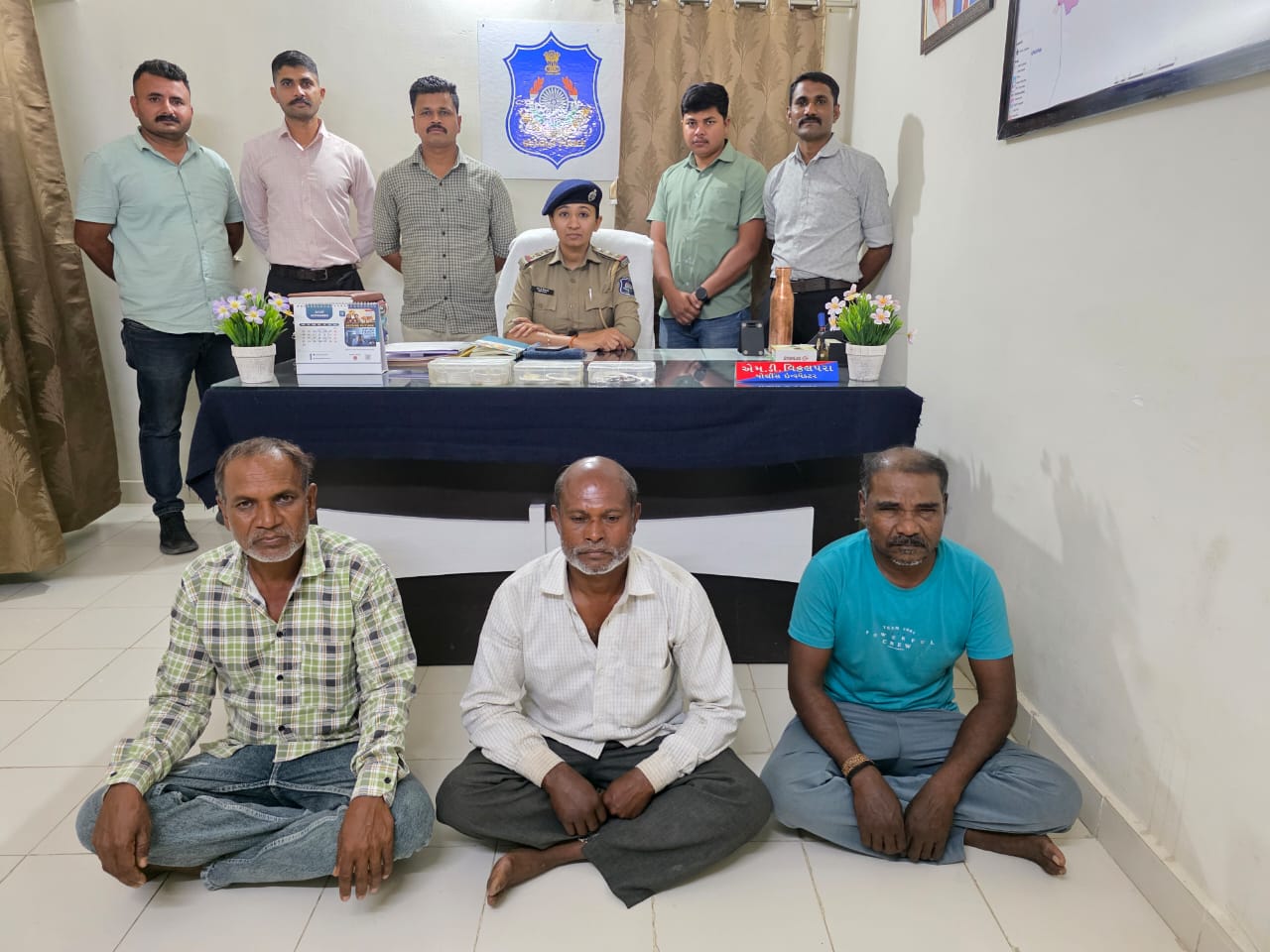 પોલીસે વોચ ગોઠવી (૧) રાજુભાઈ છોટીયાભાઈ પાડવી (ઉ.વ.૫૬), રહે.ખનોરા, તા.નિઝર (૨) વસંત સદુ પવાર (ઉ.વ.૫૩), રહે. સુંદરદે, જિ. નંદુરબાર (મહારાષ્ટ્ર) અને (૩) દત્તુ રામદાસ પવાર (ઉ.વ.૪૭), રહે. સાક્રી, જિ. ધુલિયા (મહારાષ્ટ્ર)નાઓની ધરપકડ કરી છે. પોલીસે આરોપીઓ પાસેથી સોનાના બે મંગળસૂત્ર,સોનાની લોકેટ સાથેની ચેન,ચાંદીના વાલા, સાંકળા અને સારન્યા મળી કુલ કિંમત રૂ.૧,૬૪,૭૦૦/-નો મુદ્દામાલ પણ કબજે કર્યો છે.