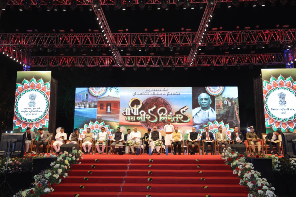 મુખ્યમંત્રીશ્રી ભૂપેન્દ્ર પટેલે ૭૬મા પ્રજાસત્તાકના પર્વની રાજ્યકક્ષાની ઉજવણીના યજમાન તાપી જિલ્લાને રાજ્યપાલશ્રી આચાર્ય દેવવ્રતજીની પ્રેરક ઉપસ્થિતિમાં એક જ દિવસમાં રૂા.૨૪૦ કરોડના વિકાસ કામોની ભેટ આપી હતી.મુખ્યમંત્રીશ્રીએ ૨૦ વિકાસ કામોના લોકાર્પણ અને ૪૧ કામોના ખાતમુહૂર્ત વ્યારામાં ૭૬માં પ્રજાસત્તાક પર્વની પૂર્વ સંધ્યાએ કર્યા હતા. રાજ્યપાલશ્રી અને મુખ્યમંત્રીશ્રીએ તાપી જિલ્લાને વિવિધ ક્ષેત્રે ગૌરવ અપાવનારા ૧૩ જેટલા વ્યક્ત વિશેષોનું સન્માન પણ આ અવસરે કર્યું હતું.