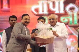તાપી જિલ્લાના વિકાસને વધુ ગતિ આપવા રાજ્યપાલશ્રી અને મુખ્યમંત્રીશ્રીએ રૂ. ૨.૫ કરોડ જિલ્લા કલેકટરને અને ૨.૫ કરોડ રૂા ના ચેક જિલ્લા વિકાસ અધિકારીને અર્પણ કર્યા હતા.